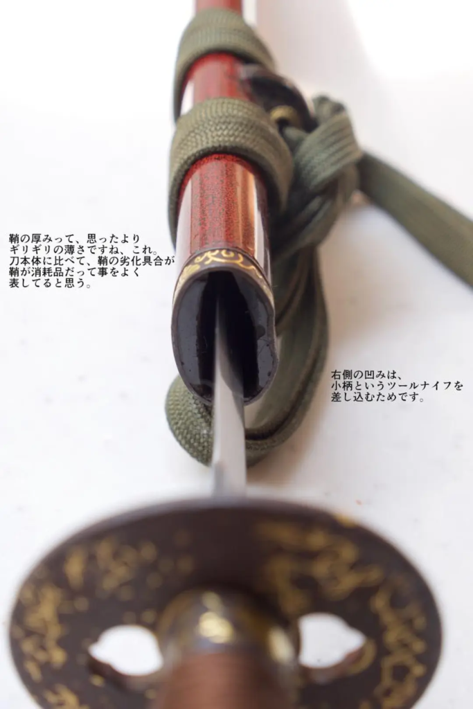 右下にポコっととび出てるのは、刃を柄に留めているストッパーの竹釘です。